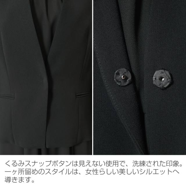 ブラックフォーマル専門店メアリーココで使用しているブラックフォーマル(喪服・礼服)の生地は丁寧に選ばれた美しい、ワンランク上の黒。周りに劣らない深い黒と自慢の立体縫製が奏でる美シルエットに自信があります。ジャケットは、シルクウール調素材を目指した帝国フロンティアのラチェット原糸を使用しています。高級感のある適度な反発性と優れた発色性。見た目の高級感と機能性がフォーマルスタイルを格上げしてくれる生地です。ワンピースは、強撚糸を使用したジョーゼット素材を使用しています。シワになりにくく、さりげないシアー感と軽やかな生地でありながら、マットな質感で落ち着きがあるのも魅力的です。ブラックフォーマル(喪服・礼服)専用生地。ぜひ手に取り、品質をご確認ください。