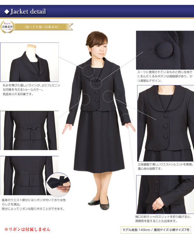 後身のウエスト部分にはリボンが付いており女性らしさを演出。