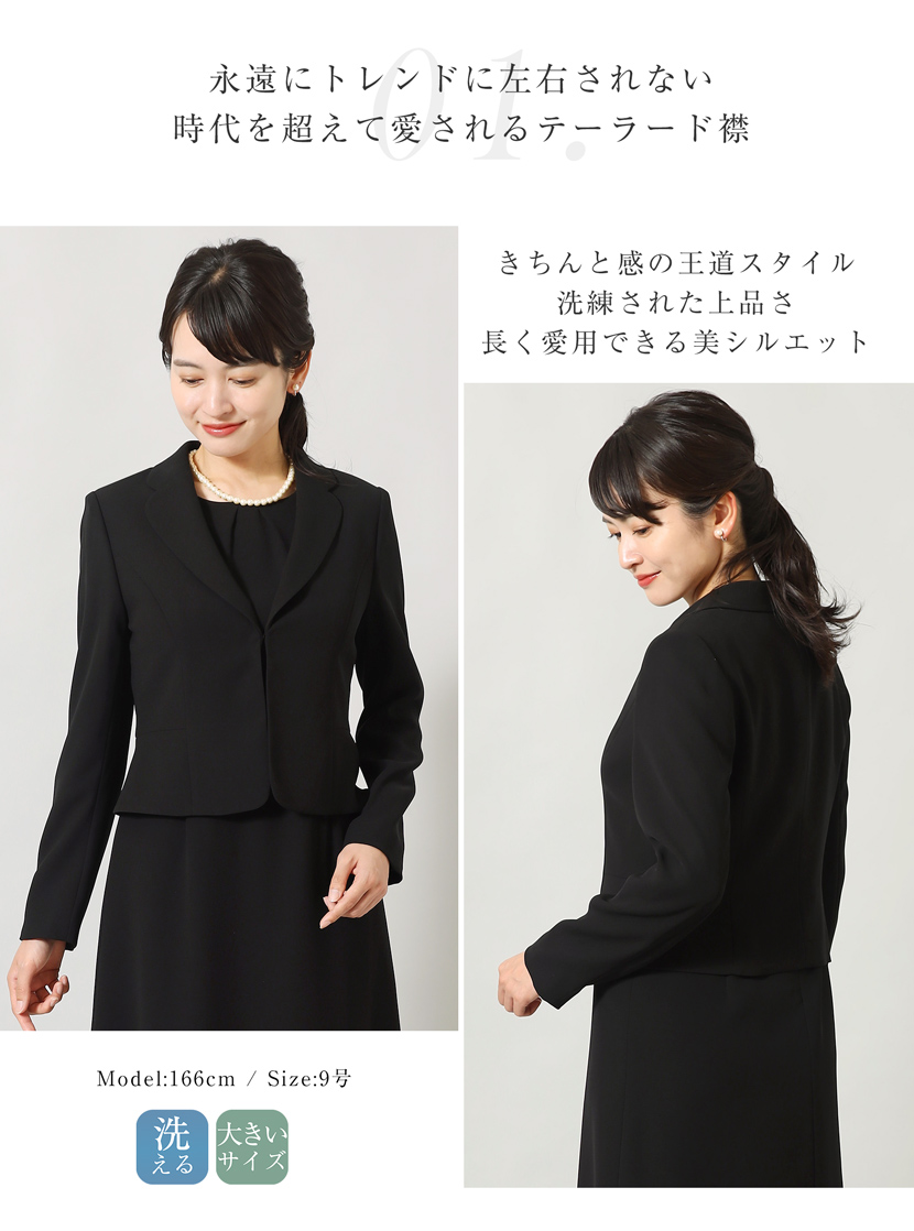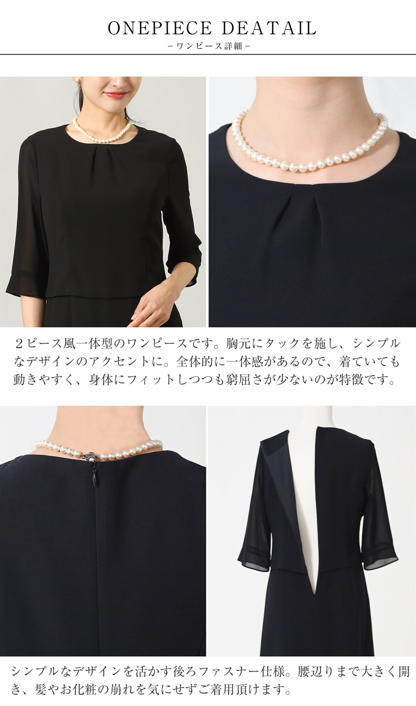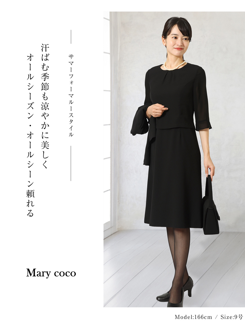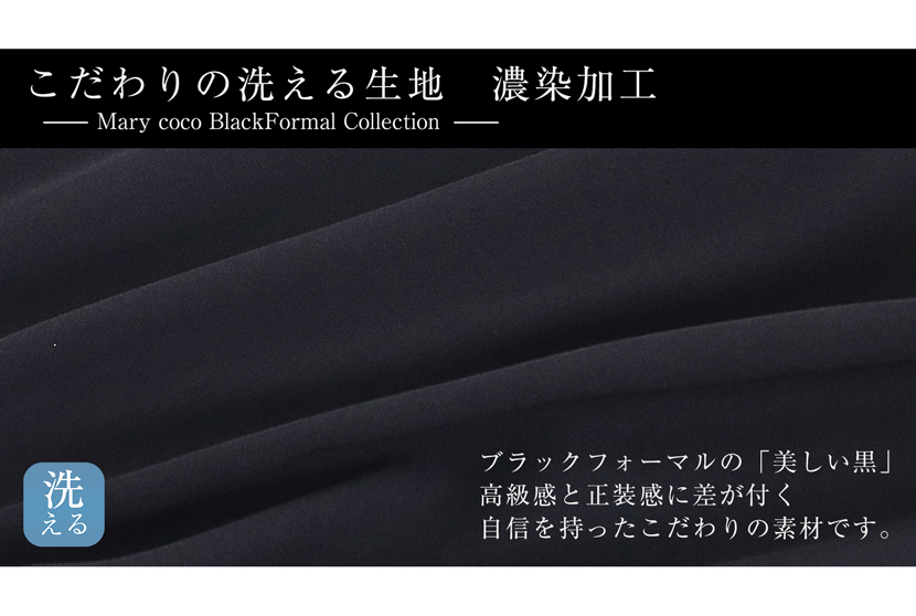 | 素材 | ブラックフォーマル専門店メアリーココで使用しているブラックフォーマル(喪服・礼服)の生地は丁寧に選ばれた美しい、ワンランク上の黒。周りに劣らない深い黒と自慢の立体縫製が奏でる美シルエットに自信があります。ぜひ手に取り、品質をご確認ください。 |