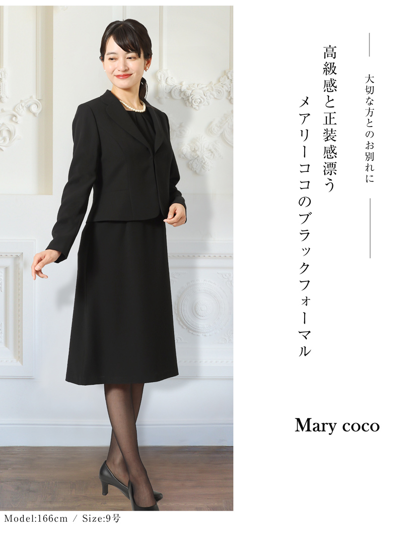 | ≪メアリーココのこだわり≫ メアリーココのブラックフォーマル(喪服・礼服)スーツは豊富なデザイン・サイズ展開で、生地にはもちろんのこと、縫製・着心地・シルエットにこだわり、 初めてのブラックフォーマルからミセスの方まで幅広く対応しておりますので、必ず自分好みでお気に入りの一着に出会えます。 メアリーココでは、お客様により満足していただくために、価格にもこだわっています。 企画・製造・販売まで一貫して行うトータルアパレルメーカーだからこそ低価格が実現できます。 美しいフォーマルを極めた、メアリーココの自慢のブラックフォーマル(喪服・礼服)を是非永くご愛着ください。 |