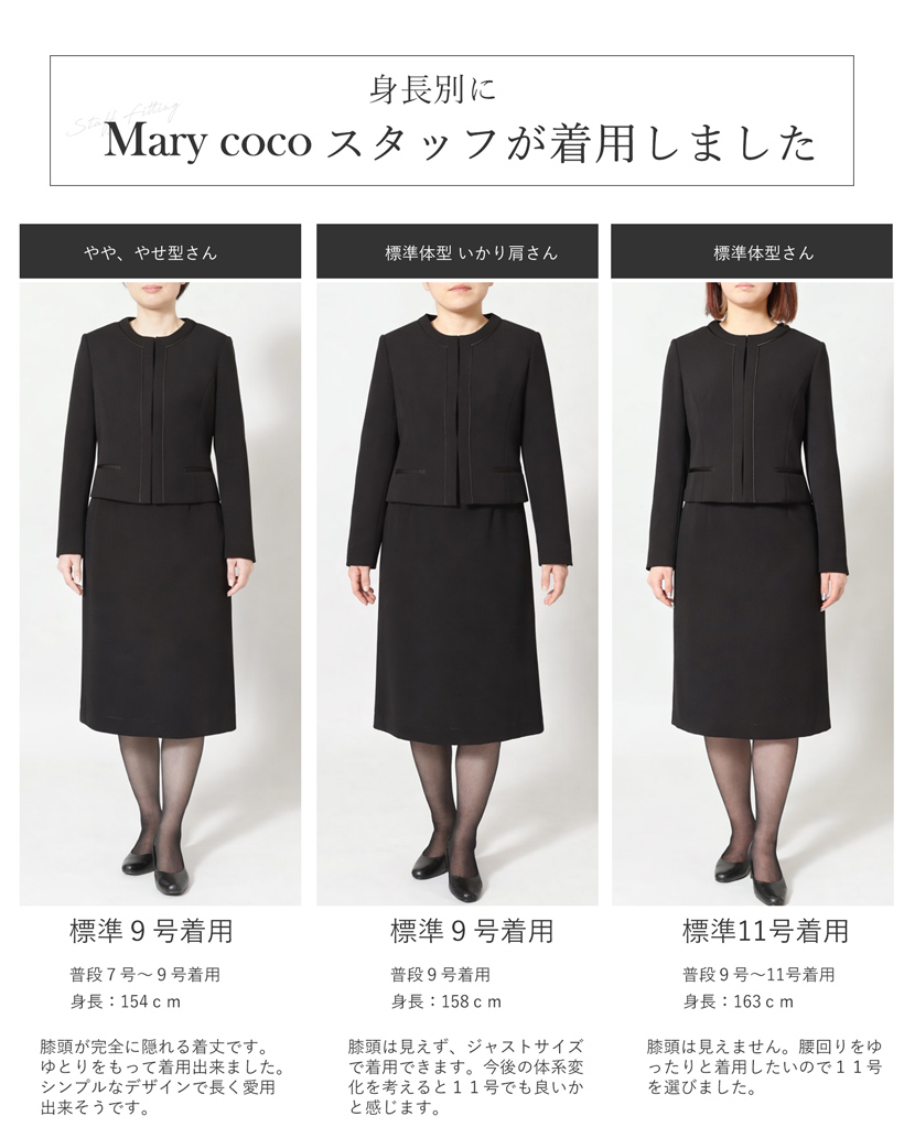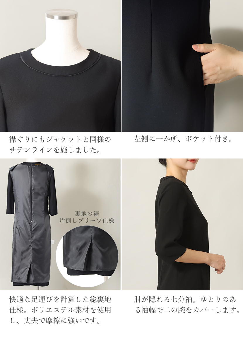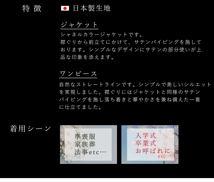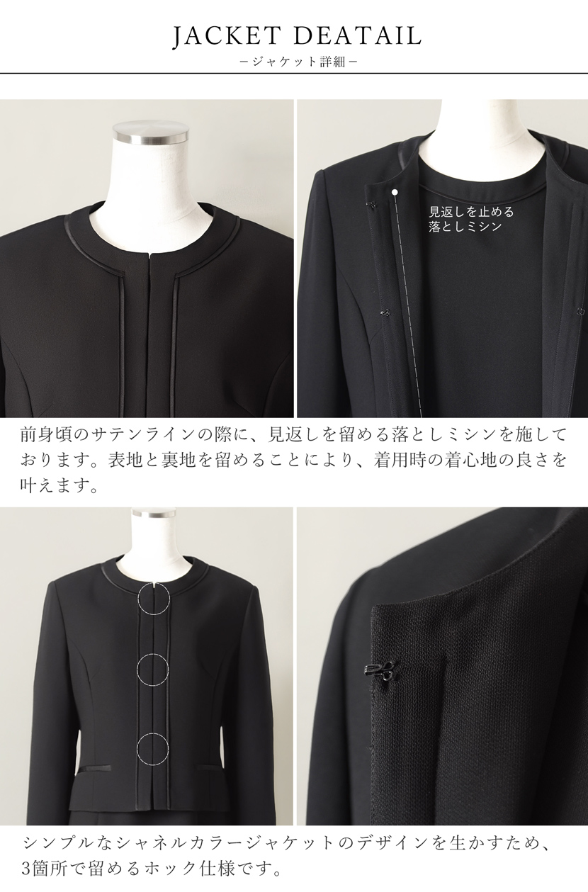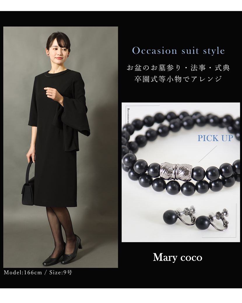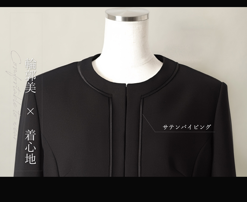ブラックフォーマル専門店メアリーココで使用しているブラックフォーマル(喪服・礼服)の生地は丁寧に選ばれた美しい、ワンランク上の黒。周りに劣らない深い黒と自慢の立体縫製が奏でる美シルエットに自信があります。ご家庭で簡単に洗えるイージーケアが魅力的です。汗ばむ季節やちょっとにおいが気にあるときも簡単にお手入れ出来ます。ぜひ手に取り、品質をご確認ください。