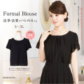 シンプルな丸襟はアクセサリーが映えるので華やかな着こなしも楽しめます。胸元のタックがバストラインを女性らしい柔らかなラインに 見せてくれます。シフォン素材の透明感のある半袖は2段のフリル調の可愛らしいデザイン。パイピング加工のアクセントが素材の柔らかさを引き立てます。ブラウスで裏地があるのはフォーマルならでは。肌触りの良いサテン地の総裏地なので透けるのを気にせずに着用できます。ボタンの無いかぶりスタイルで、全体にふんわりとしたラインです。