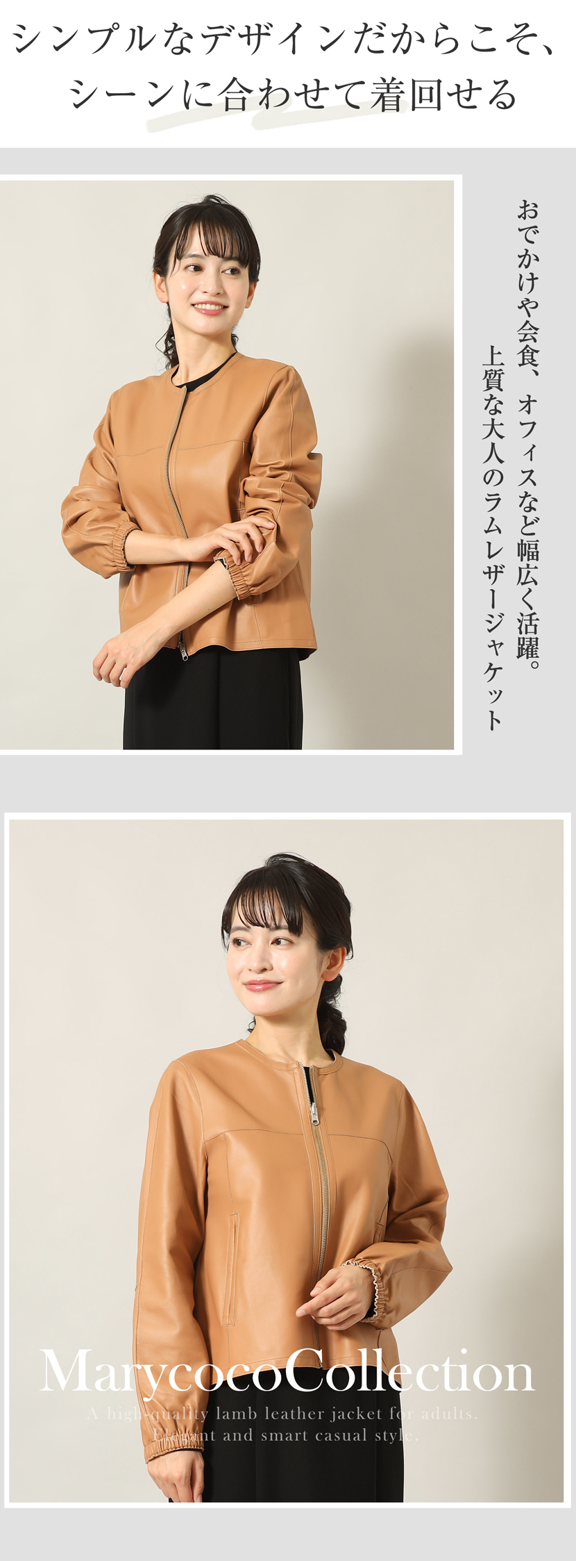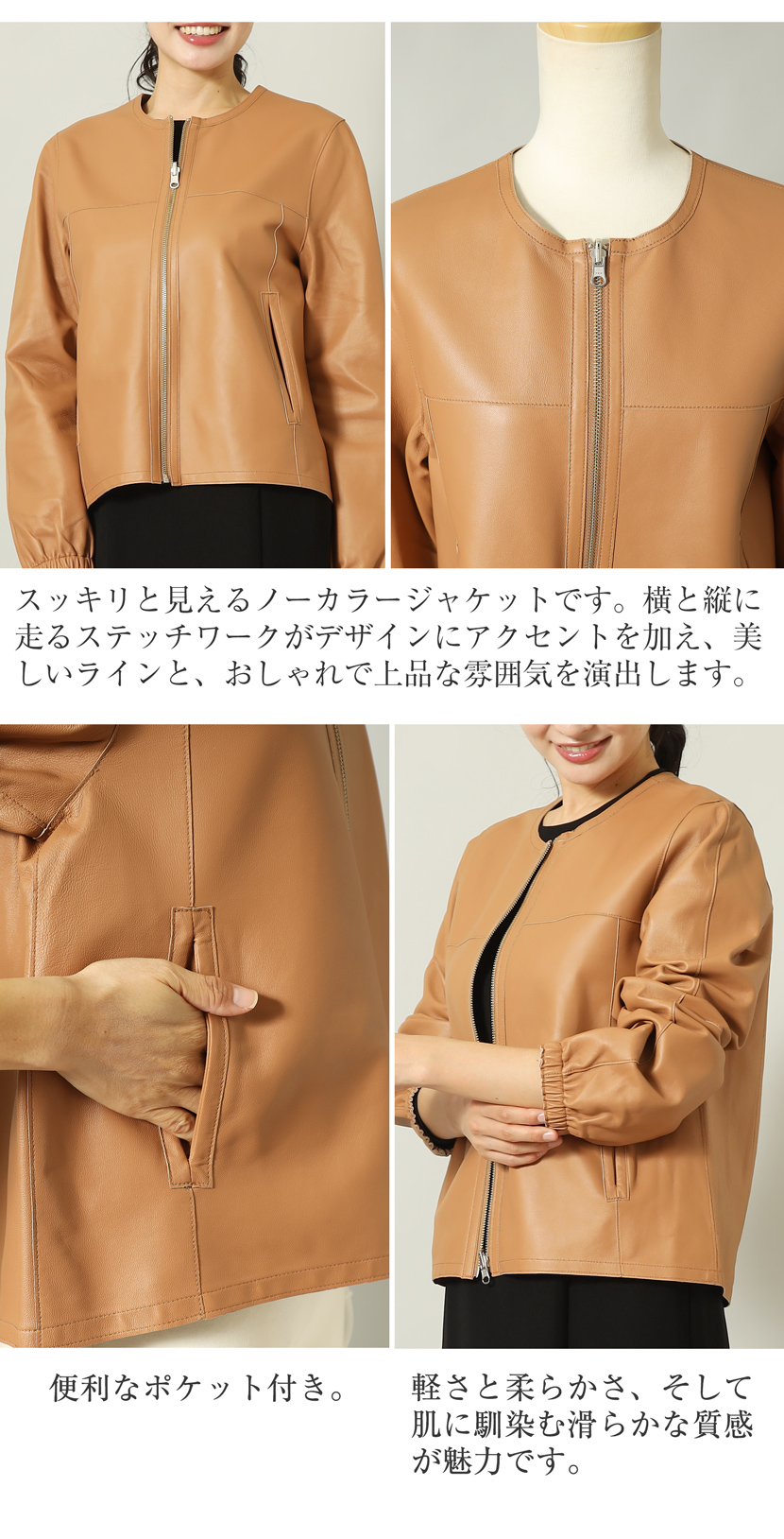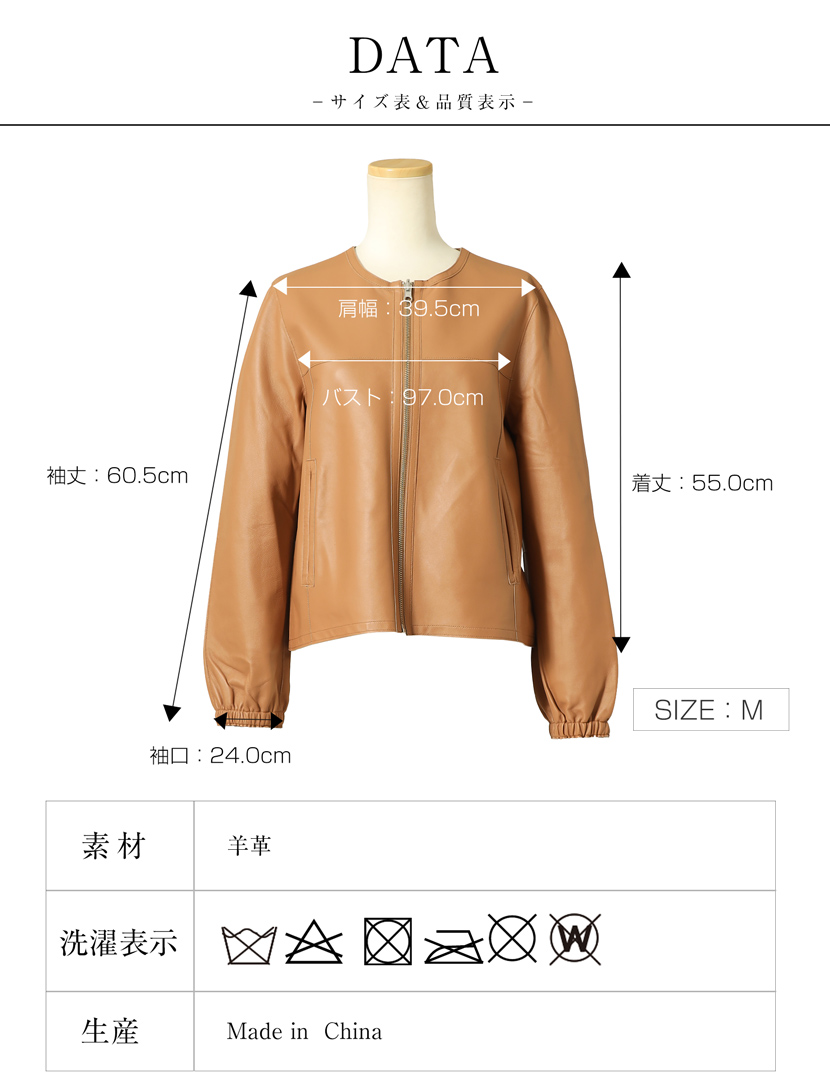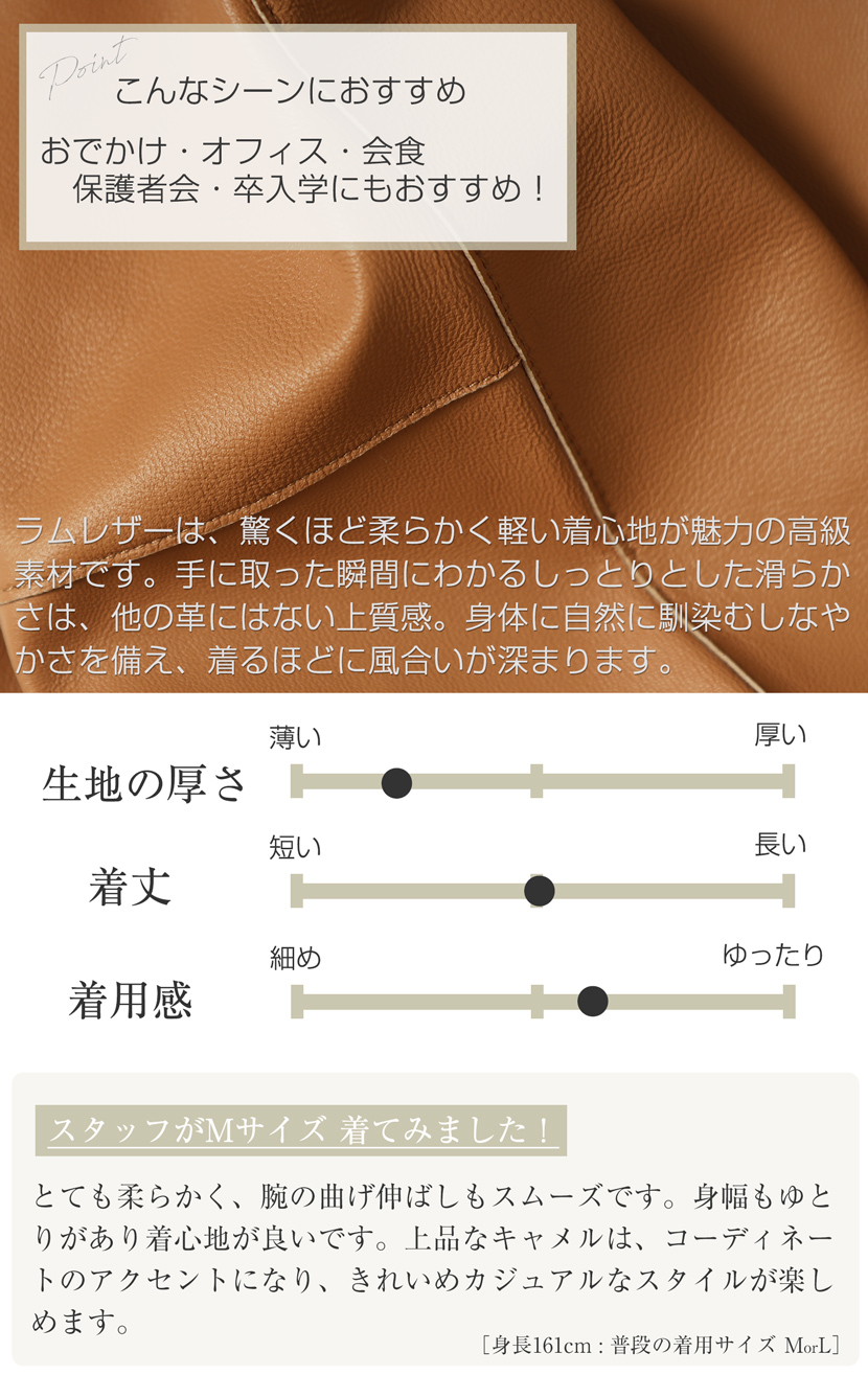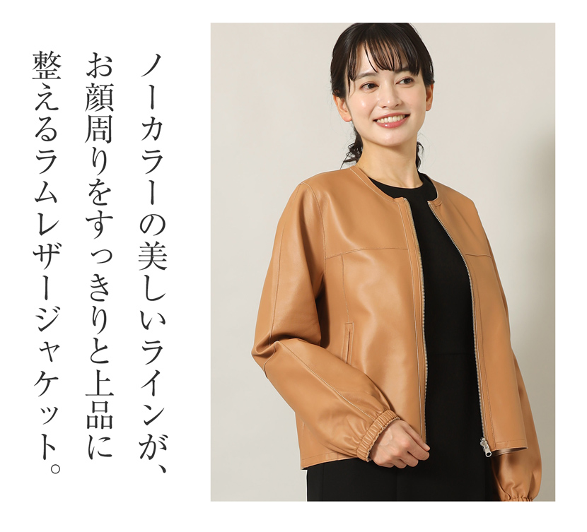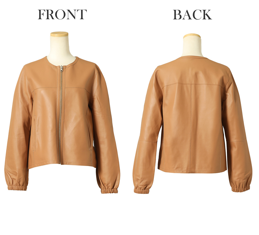 【35%OFF】ラムレザージャケット [羊革,キャメル,ノーカラージャケット]10-5481