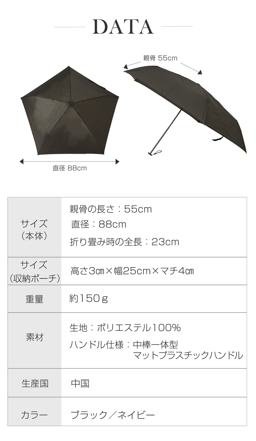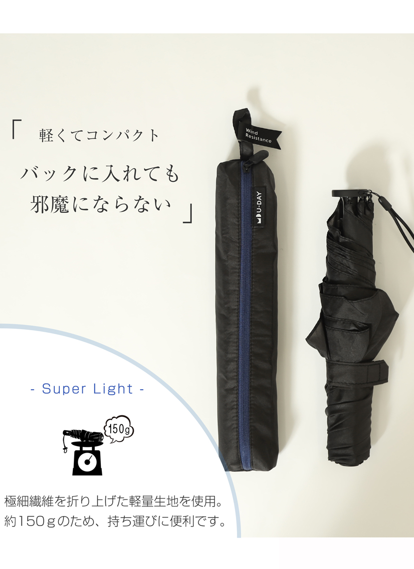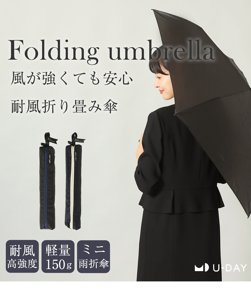 収納袋付折りたたみ雨傘 [耐風傘・軽量150g・U-DAY]215