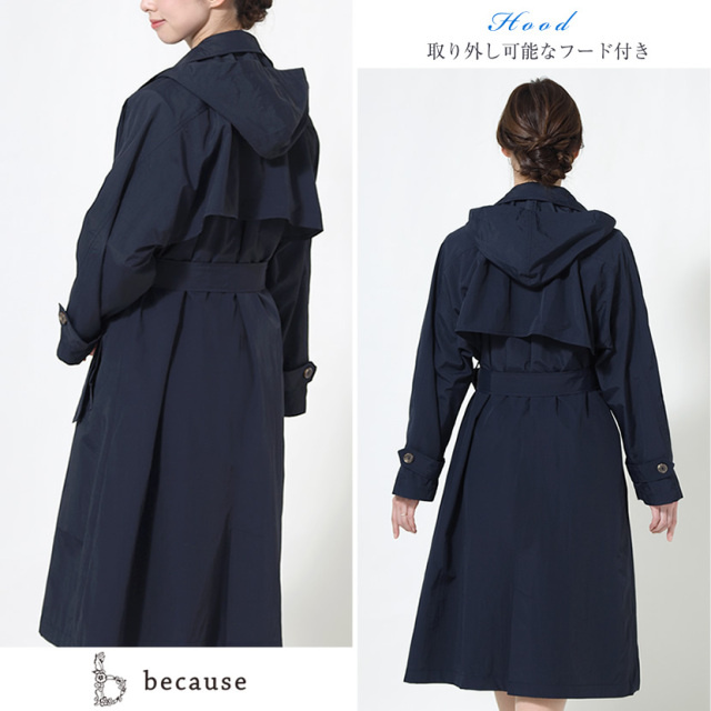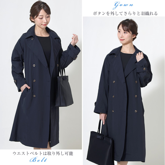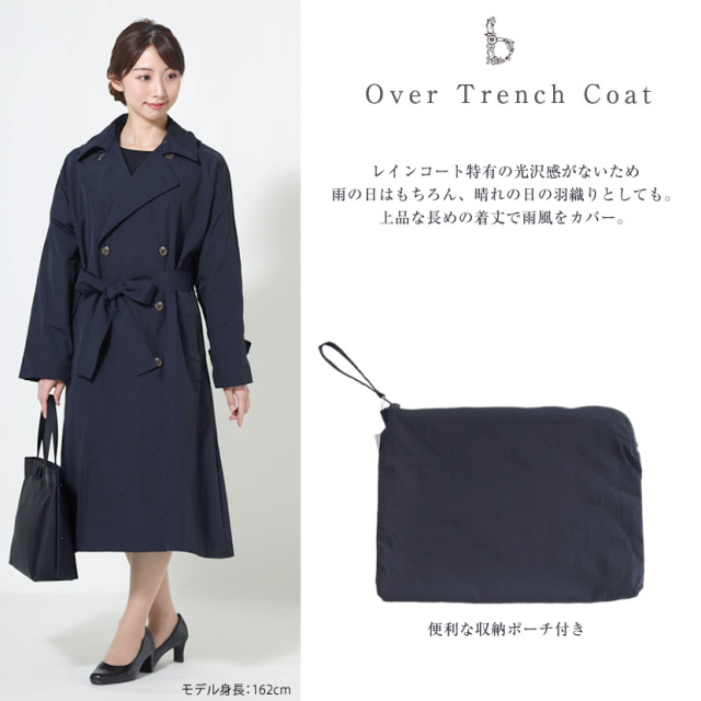 レインコート オーバートレンチコート ネイビー 収納ポーチ付き 7300