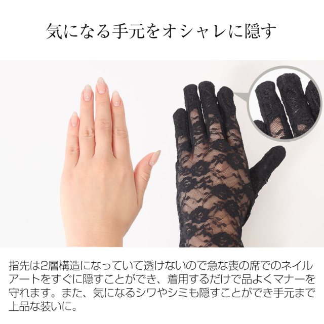 フォーマルレース手袋 黒 冠婚葬祭 b-92001