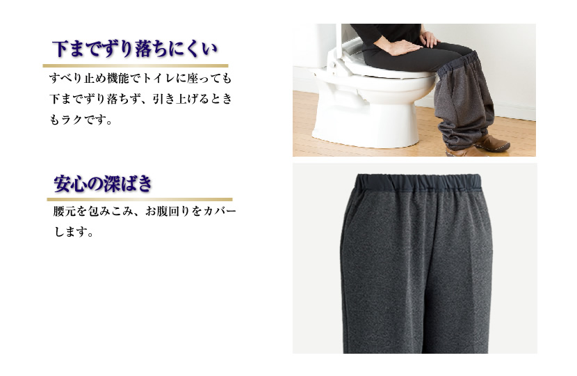 おしりスルッとパンツ,M,L,LL,モカ,グレー,ゆったり,ゴム,ズボン,レディース,ミセス,シニア,介護,病院通院,母の日,プレゼント,CF89209