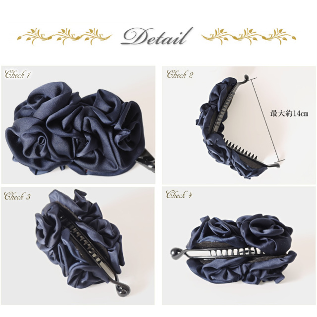 バナナクリップ フラワーモチーフ ヘアアアクセサリー(黒・紺)[ha-0217]