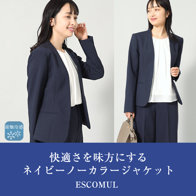 【訳ありアウトレット】【家庭で洗える】Vネックノーカラージャケット(紺) me-out-ns-002-jk