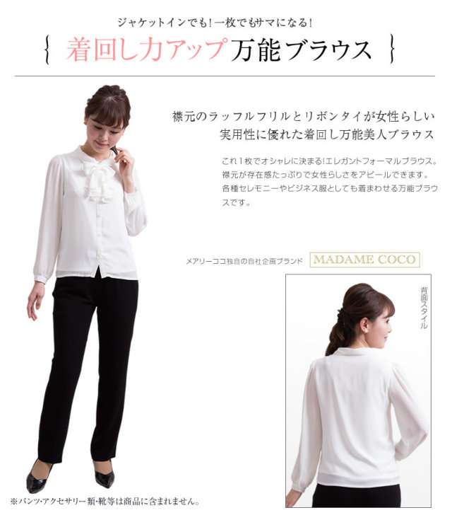 【訳ありアウトレット】ラッフルフリルとリボンタイの長袖ブラウス(白) me-out-ww-34