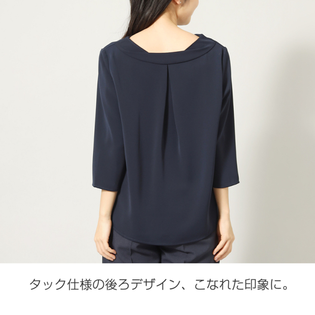 【10%OFF】Vネックタックブラウス(紺)NB-03