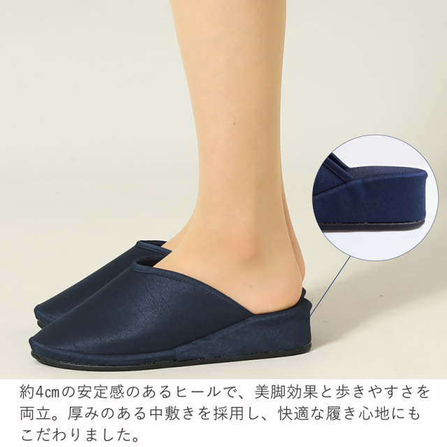 足のサイズ22.5cmなのでMサイズを購入しました。深履きできるのでパタパタ足音がせず、少しヒールがあることで歩きやすいです。もともと手持ちのスリッパを幼稚園訪問に使う予定でしたが、結果こちらを購入して良かったです。
