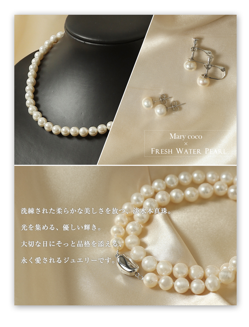 【40%OFF】淡水本真珠2点セット(セミラウンド:7.5-8.0mm)ty-8pls