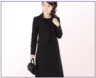 | 一般的な葬儀や一周忌までの法要などで、喪主、親族など、故人に近い関係、立場にある人が着用します。弔事での最も正式な装いです。 ◇デザイン・スタイル ワンピース、スーツ、アンサンブルなどが一般的です。スカート丈はひざ下からくるぶしまでのやや長め丈で、ジャケットの襟元は少し詰まったデザインが一般的です。 ◇生地・素材 原則的に、ブラックフォーマル専用の生地で作られたものを着用します。格が高い黒無地、地味な紋織り、部分的にジョーゼットやサテン生地で変化をつけたものも、近年は多くみられます。 ◇アクセサリー・小物 真珠は、白黒どちらでも構いません。ネックレスは、二連、三連ものは不幸が重なるとされるため、必ず一連のものを選びます。 バッグもフォーマル専用のバッグを使用します。できるだけ控えめな黒色で揃えましょう。 |